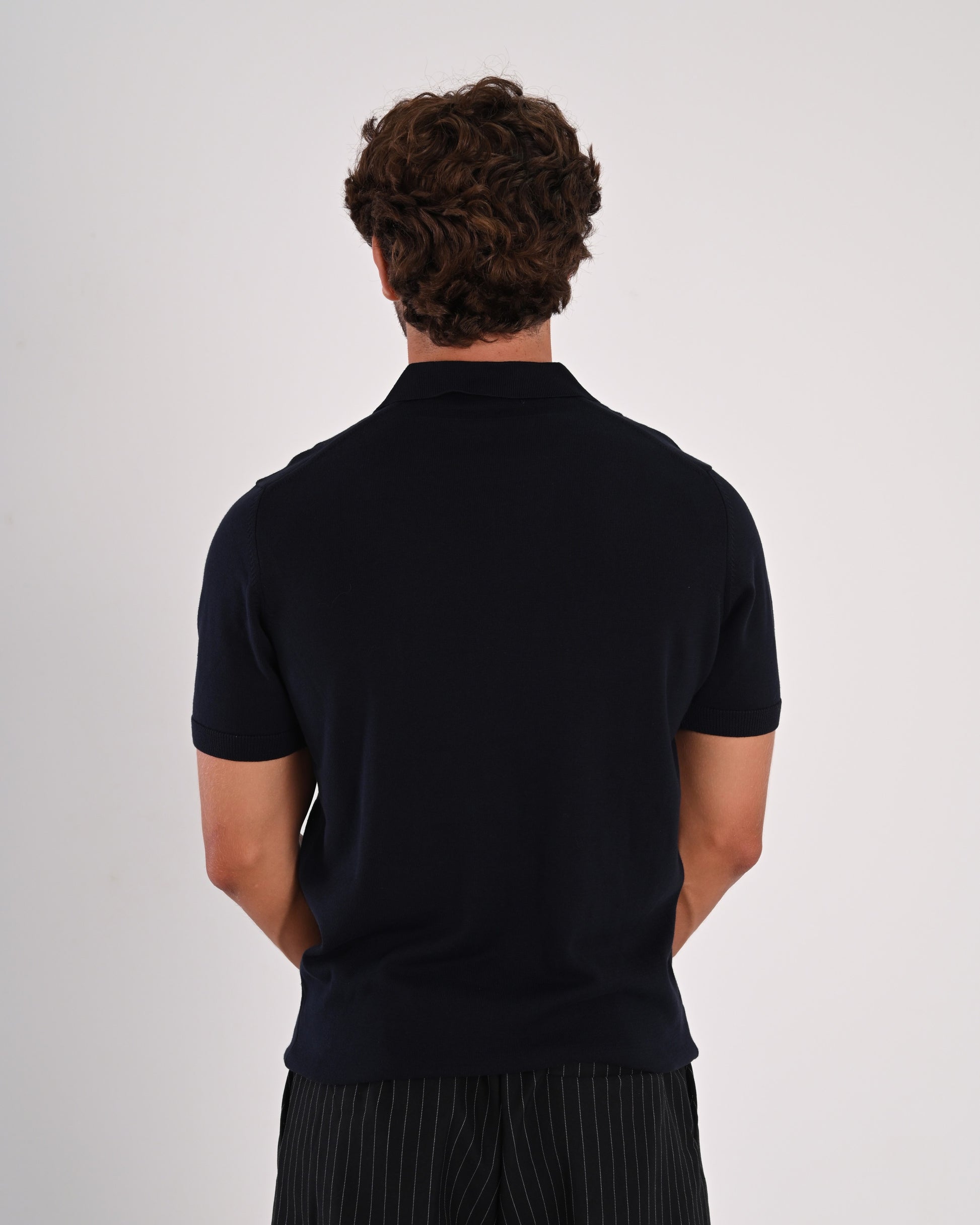 Crafted from 100% cotton using fine 40/1 yarn on a gauge 14 knitting machine, this knitted polo offers a soft, breathable finish.